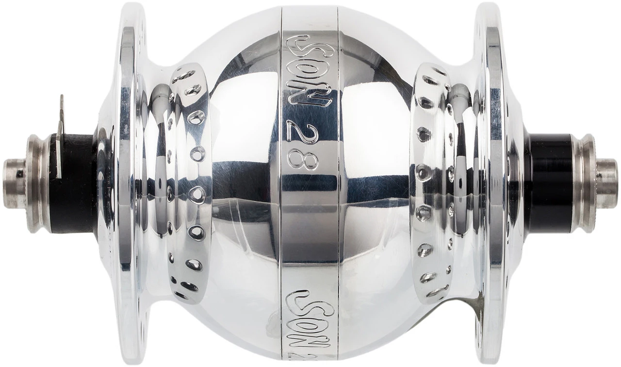 Der SON 28 ist ein universell für alle Laufradgrößen von 16″ bis 29″ zugelassener Nabendynamo. Die Nennleistung erreicht er im 28″ -Rad bei ca. 16 km/h. Damit ist er zu empfehlen, wenn bei langsamer Fahrt besonders viel Licht benötigt wird oder andere Geräte betrieben bzw. deren Akkus geladen werden sollen. Im Vergleich zum Vorgänger Son klassik konnten die Leerlaufverluste um ca. 15 % und das Gewicht um 140 g verringert werden.