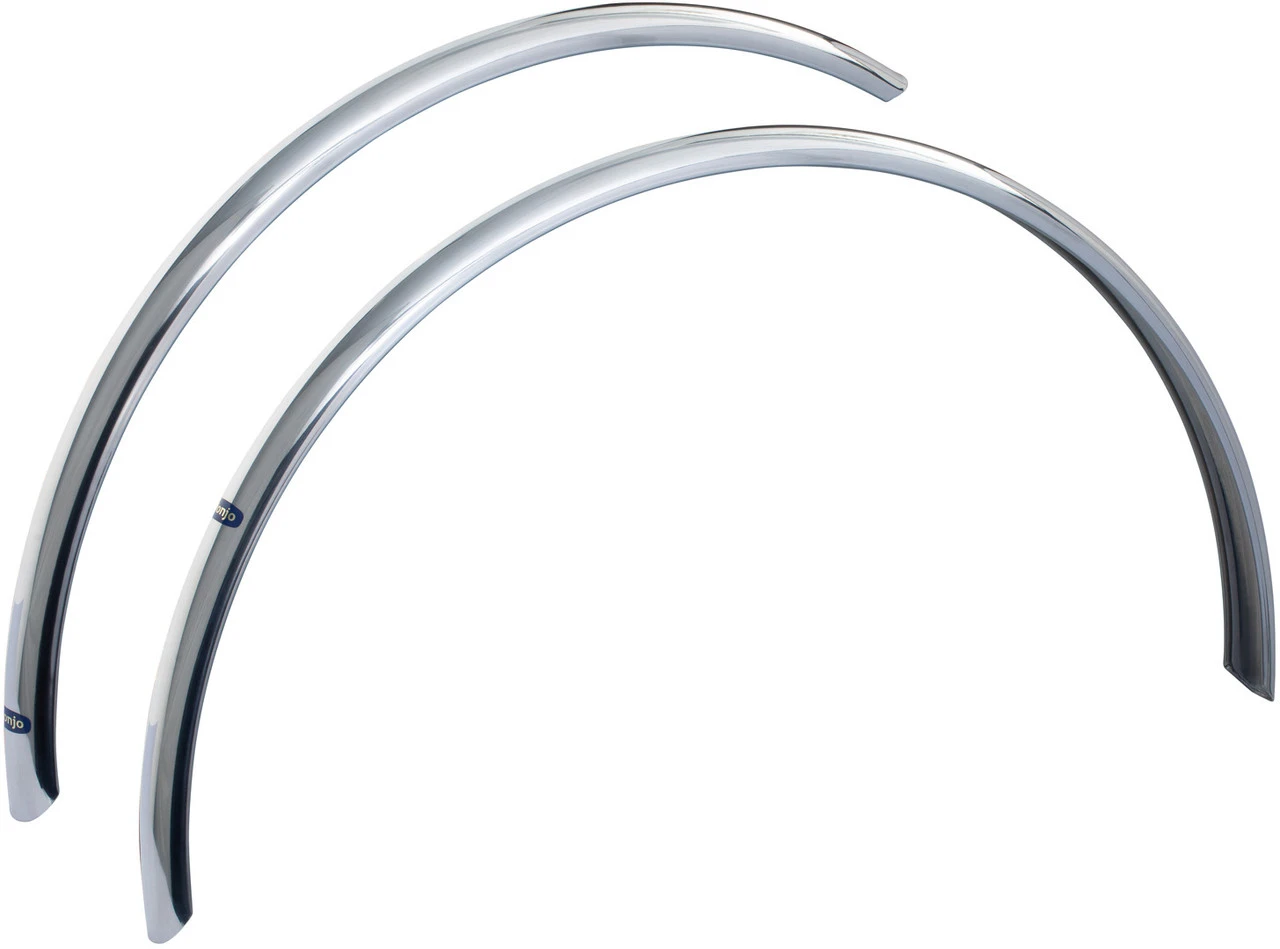 Das H30 Schutzblech Set von Honjo gehört zu den legendären auf Hochglanz polierten Klassikern aus Japan. Die Schutzbleche decken eine Reifenbreite von bis zu 33 mm ab. Mit dem besonders weit umfassenden Profil wird Spritzwasser einwandfrei im Blech gefangen gehalten. Das heißt, auch Füße und Kurbel bleiben trocken. Zudem verfügen die handgearbeiteten Schutzbleche von Honjo über eine edle Optik, ein geringes Gewicht und eine ausgesprochen lange Haltbarkeit.